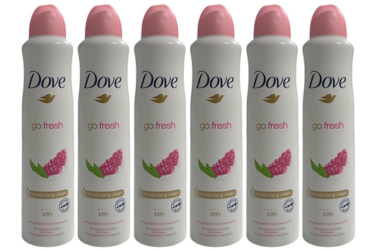 6 PK Dove Go Fresh Antiperspirant Body Spray Pomegranate & Lemon 150ML, 5.07 OZ