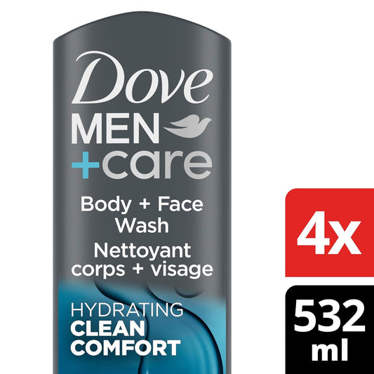 4 Pack DOVE MEN + CARE Body and Face Wash Clean Comfort 18 oz / 532 mL
