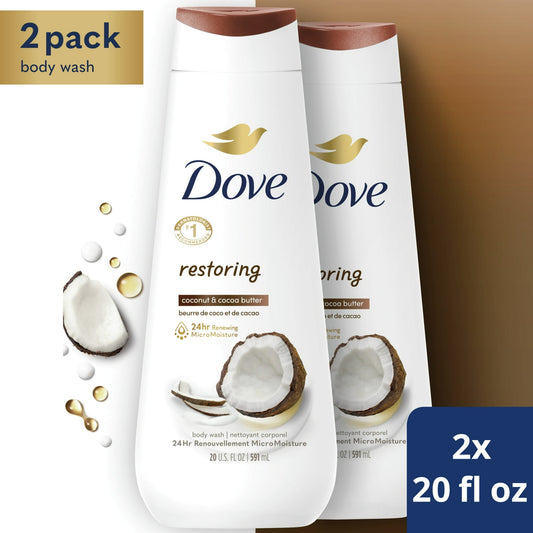 Dove Body Wash for Women Restoring Coconut & Cocoa Butter, 20 oz 2 Count