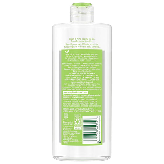 2 Pack Simple Micellar Cleansing Water 13.5 fl oz Gentle Makeup Remover & Cleanser